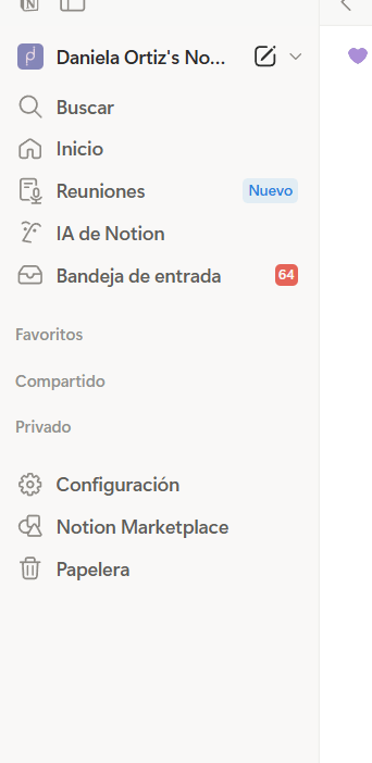 En Notion, encuentra tu Centro de Control en la barra lateral izquierda.